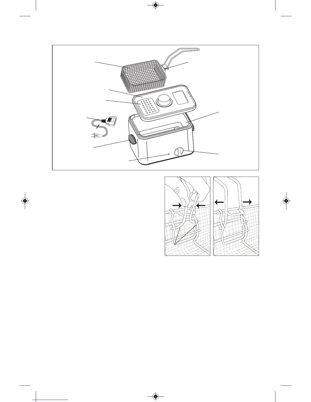 1. To attach the handle to the fry basket, hold
