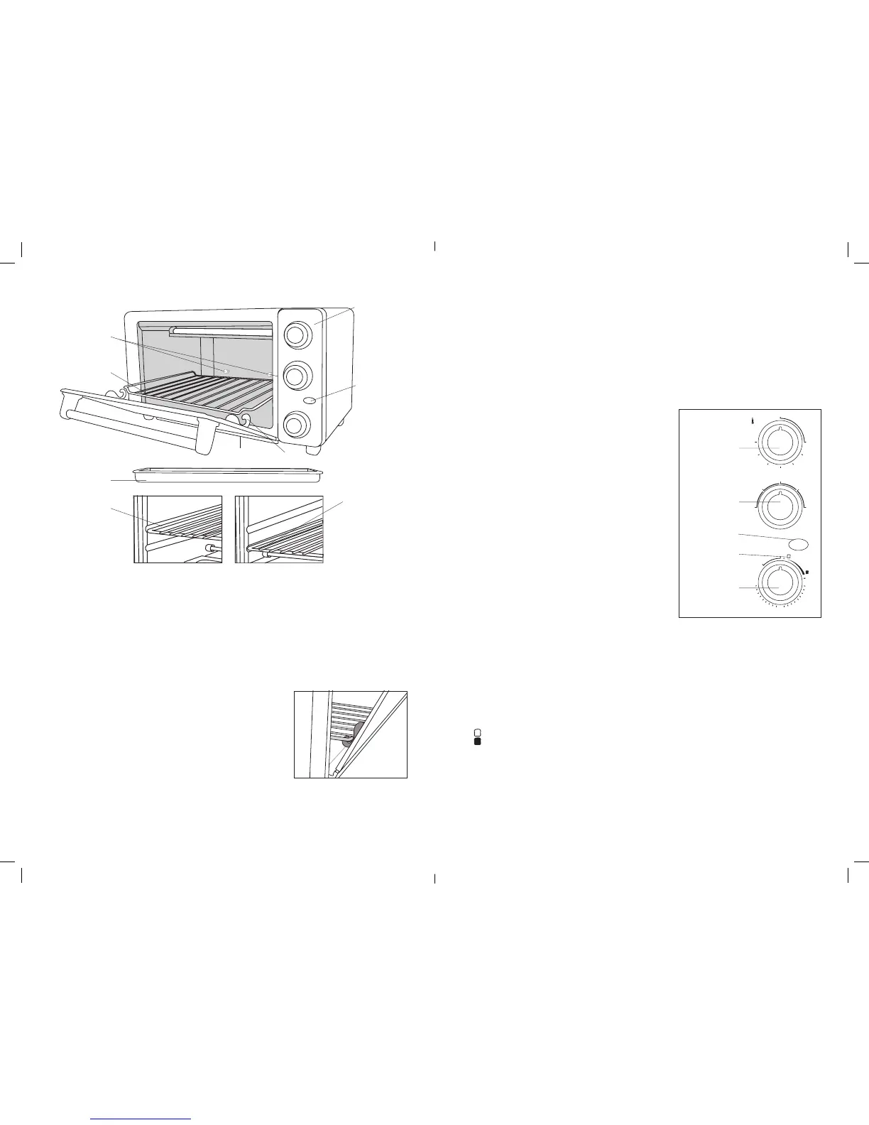 • Make sure the Crumb Tray is properly installed below the lower heating elements before using.