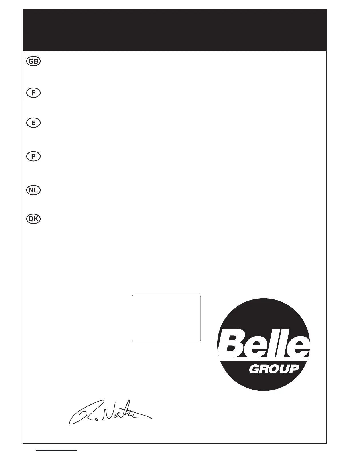 Belle Group forhandler i EU, er det i overensstemmelse med følgende EØF-direktiver: 98/37/EF, 73/23/EØF (som ændret ved 93/68/EØF), 89/336/EØF (som ændret ved