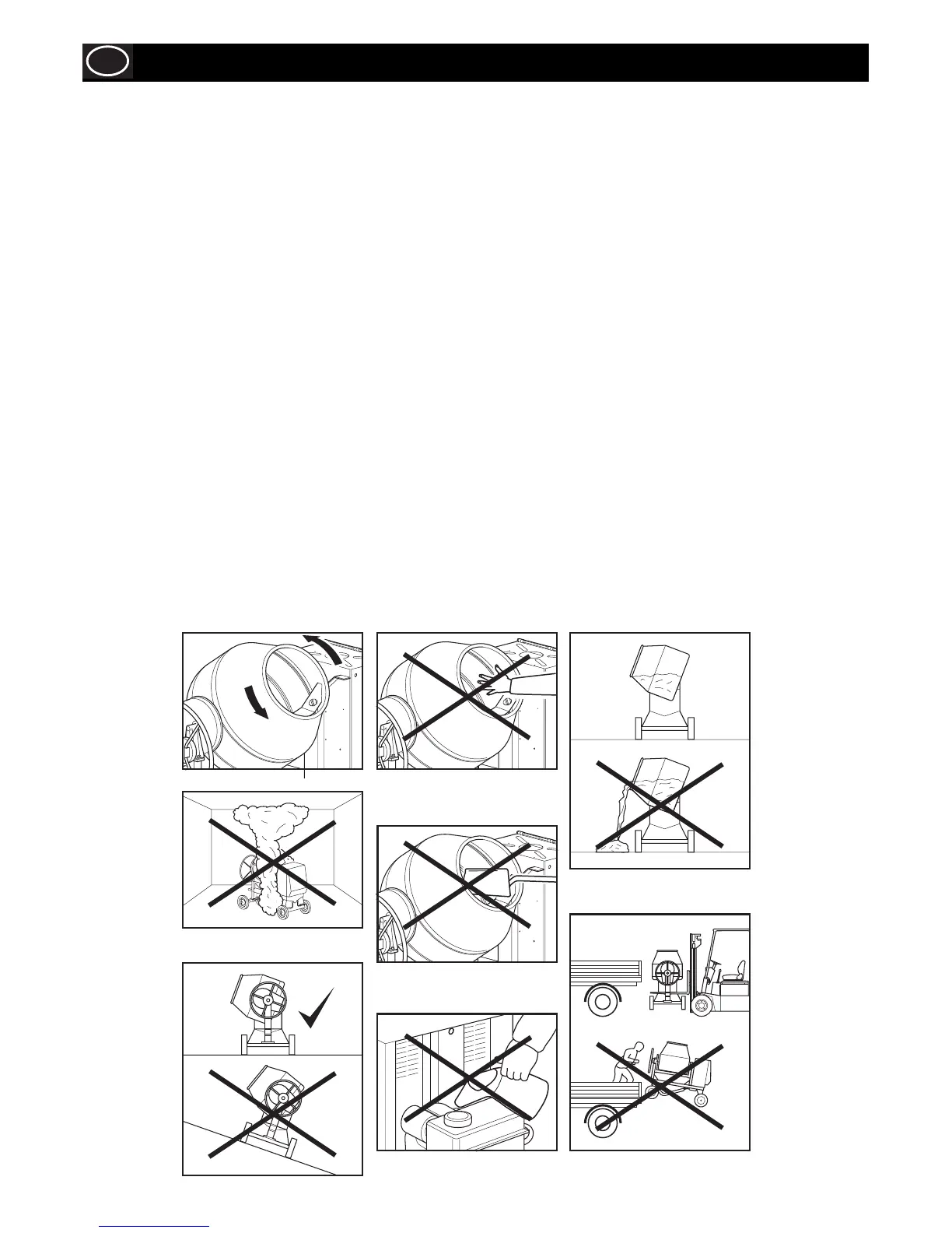 - Ensure rear wheel brakes are applied before operating the mixer.