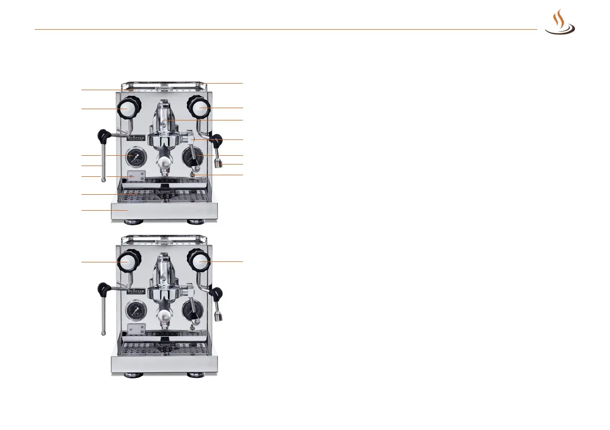 11 Hot water lever: To start the pump and dispense espresso