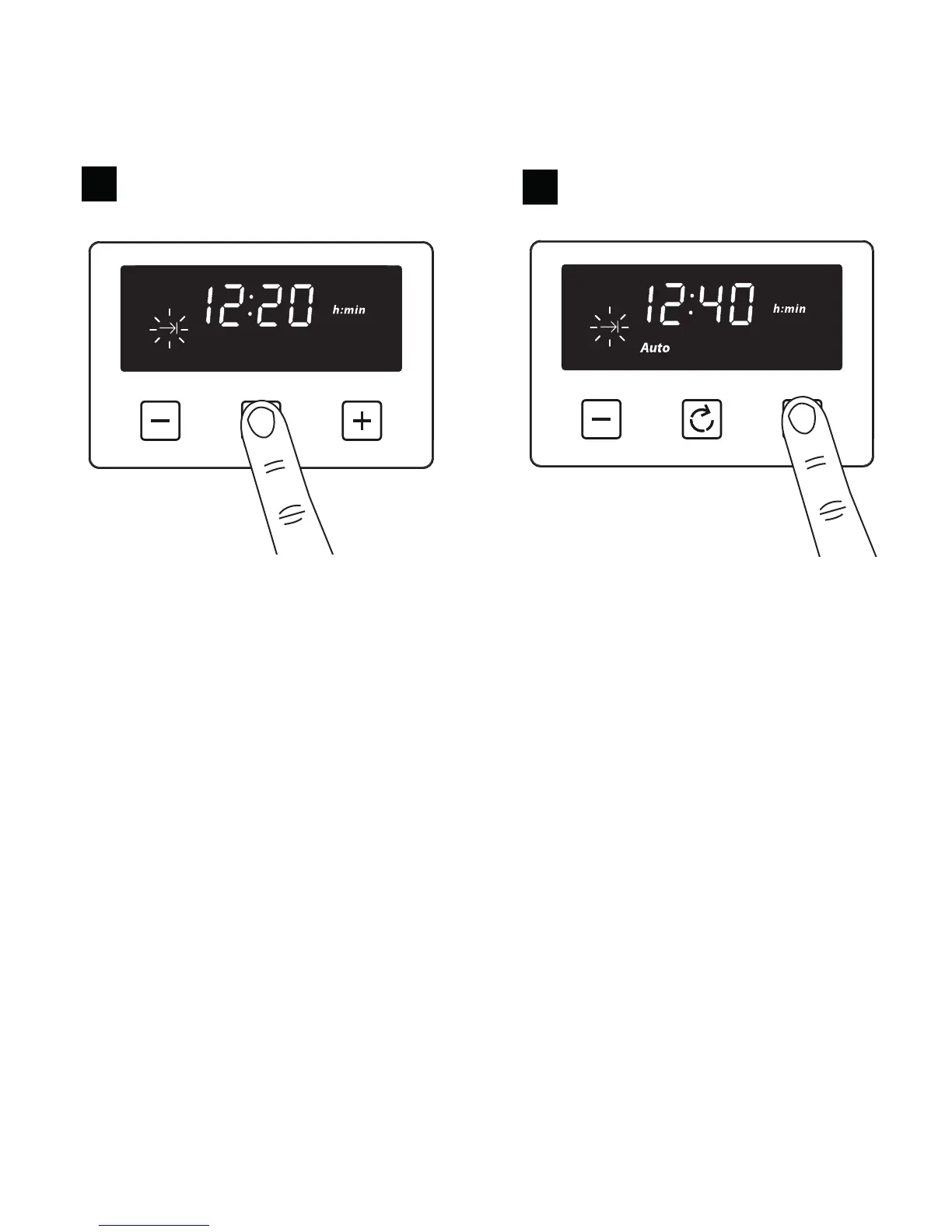 The display shows the current ‘time of day’ plus the ‘end of cooking time’ symbol. The latest ‘end of