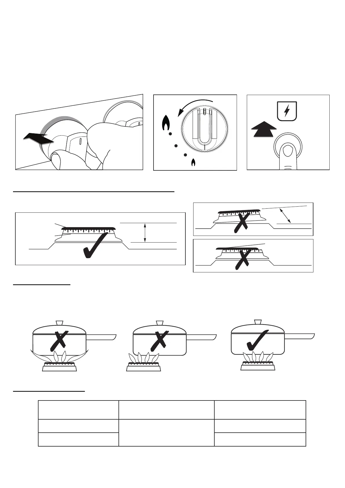 Always make sure that your pans are placed centrally on the burners and do not allow the ame to