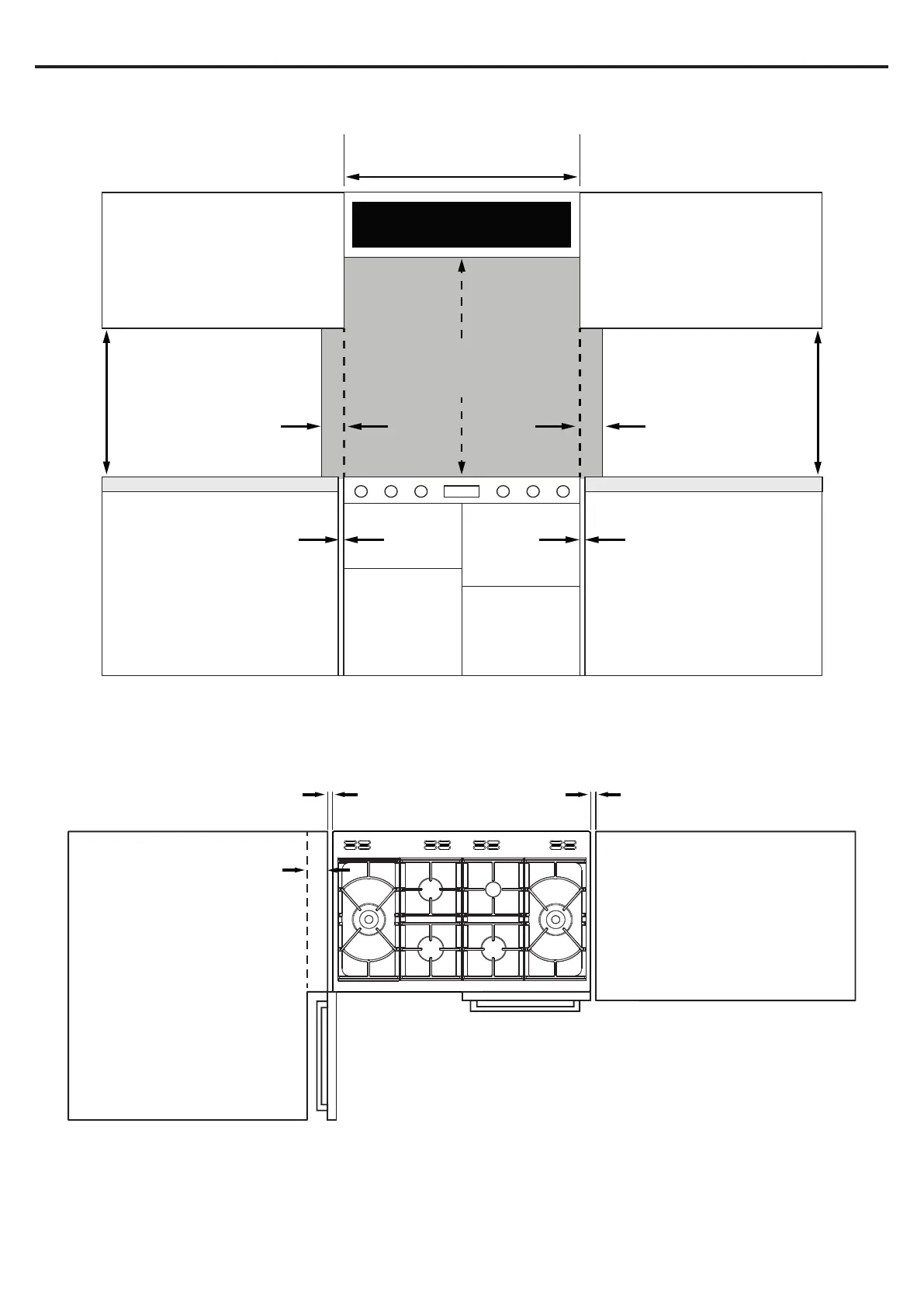 • The cooker must have a side clearance above hob level of 90mm up to a height of 400mm.