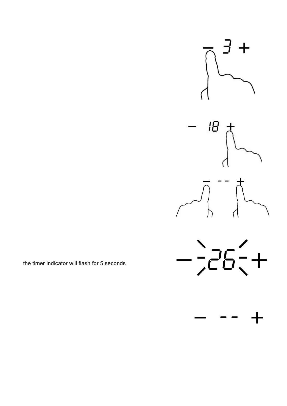 3. By touching the ”-“ and “+” keys together, the cooking