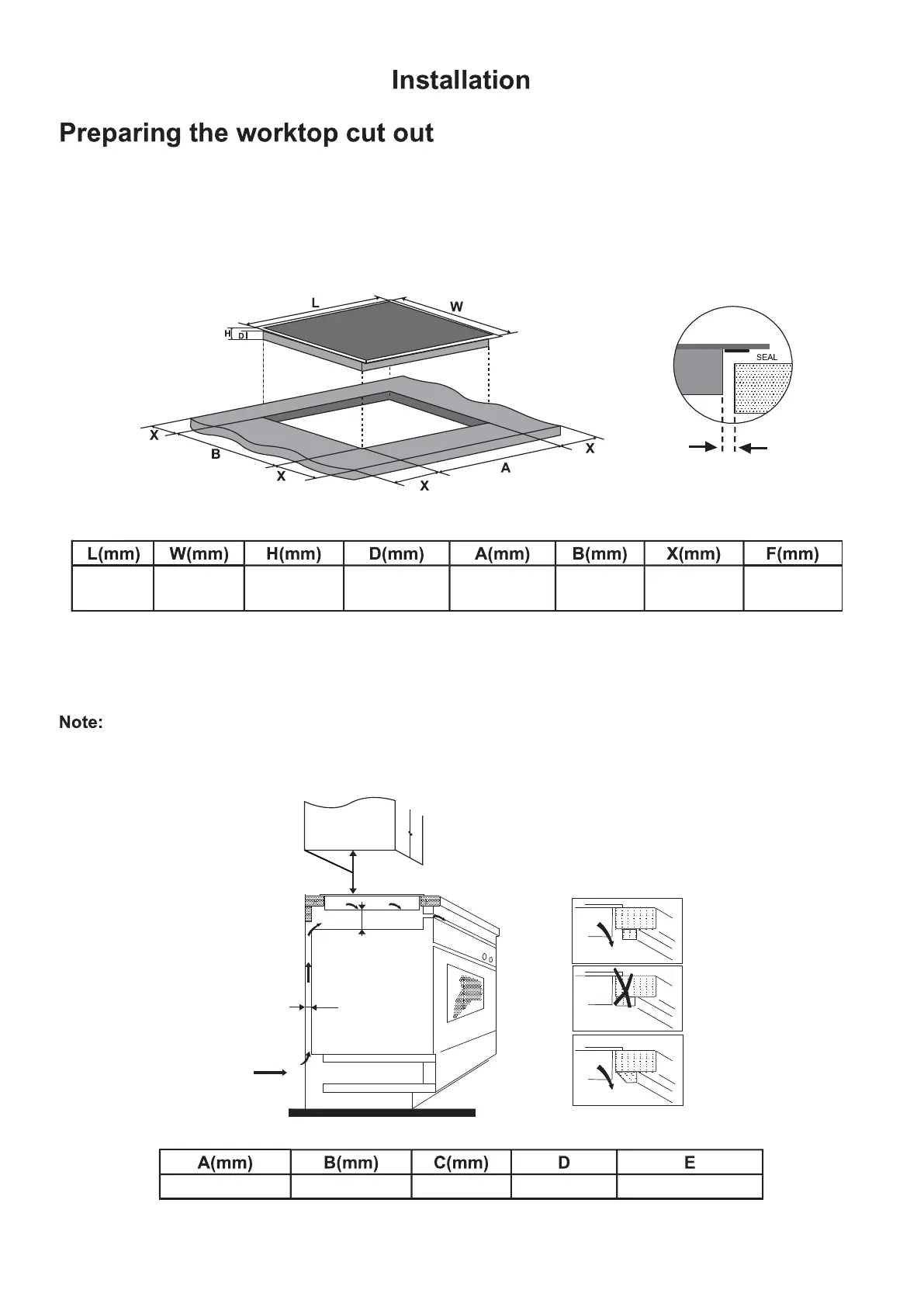 blocked. Ensure that the hob has not been damaged in any way. Do not install a damaged appliance.