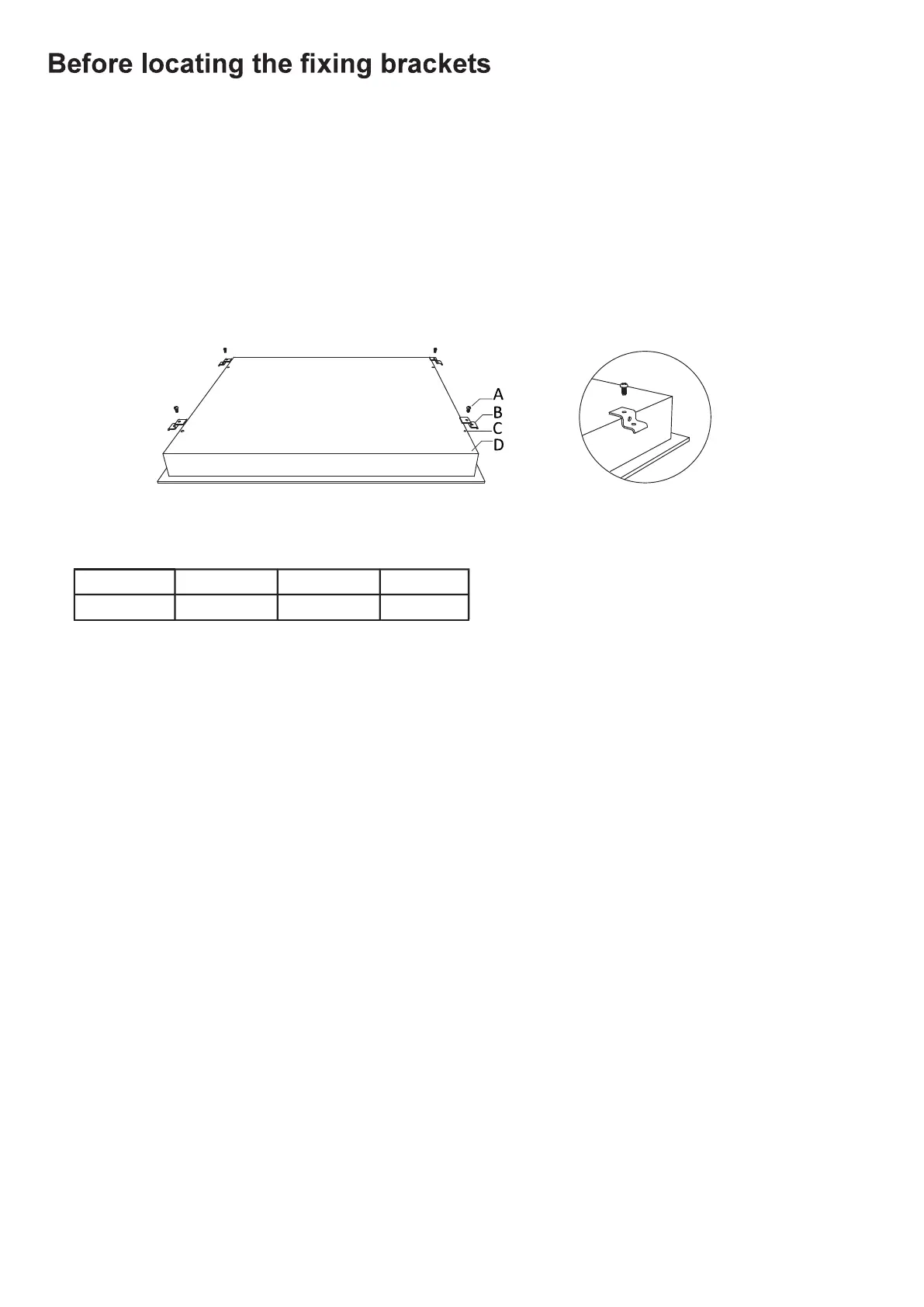 Place the hob in a work surface cut out. Secure by screwing four brackets on the bottom of the hob