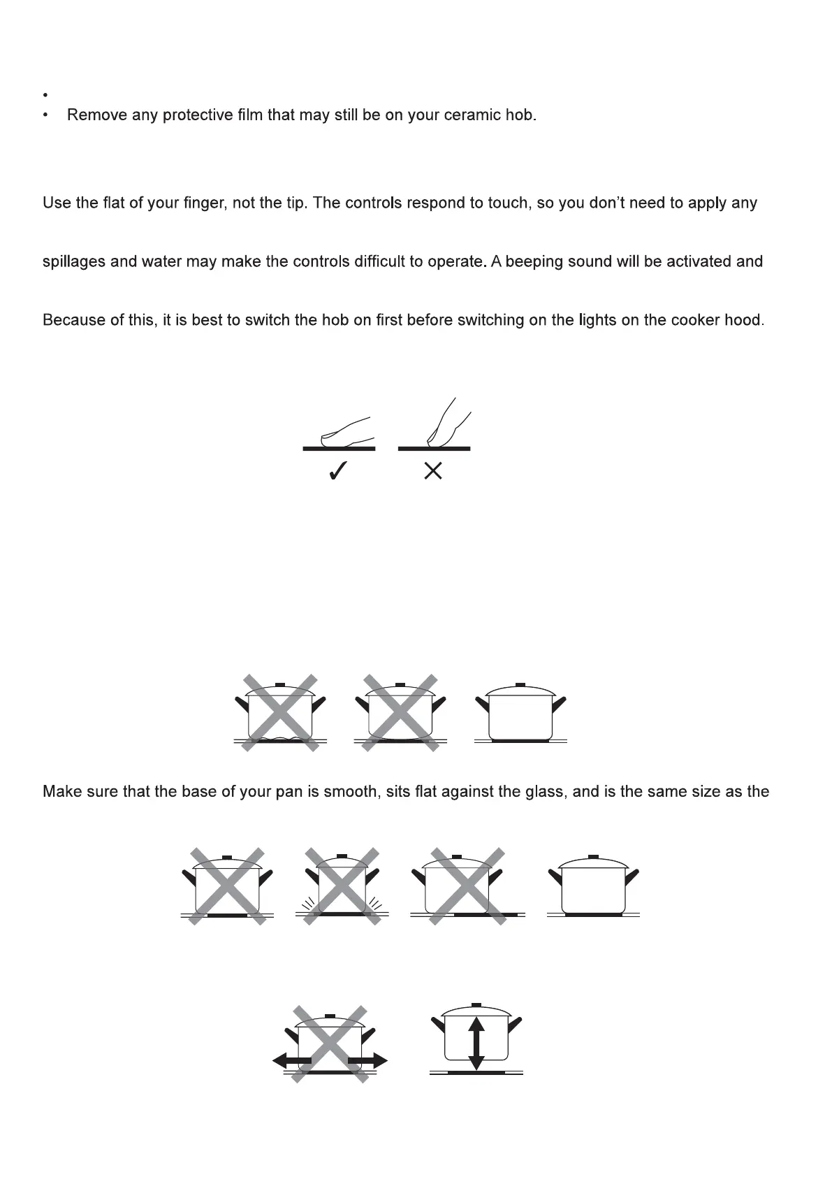 Always lift pans off the ceramic hob – do not slide, or they may scratch the glass.