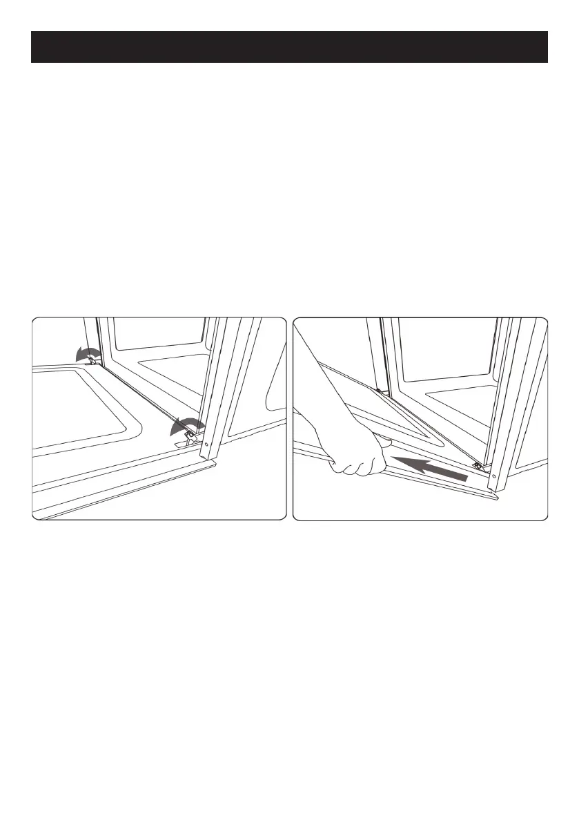 • Lift the door upwards and outwards from the oven to extract it from its mountings.