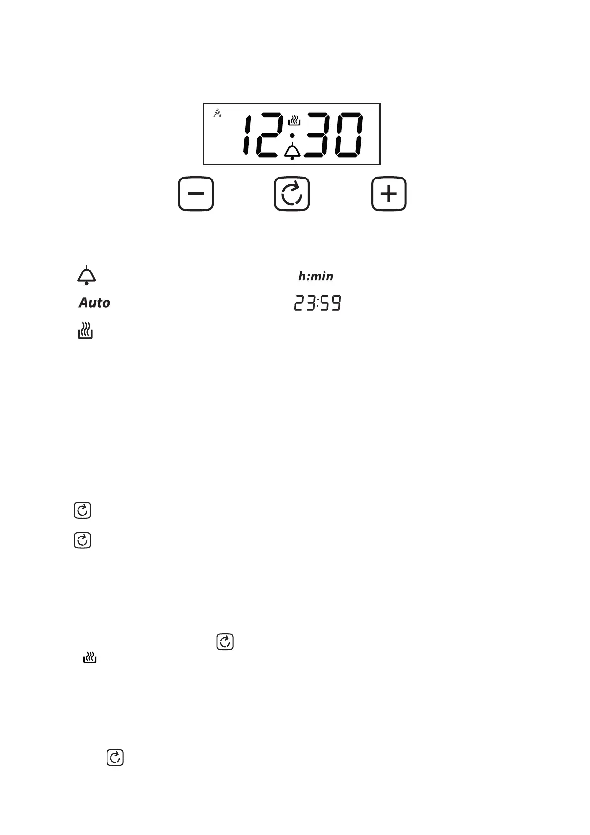 “12.30”, a beep sounds once and the “12” and ”.” ashes. Ensure the correct time of the day is set
