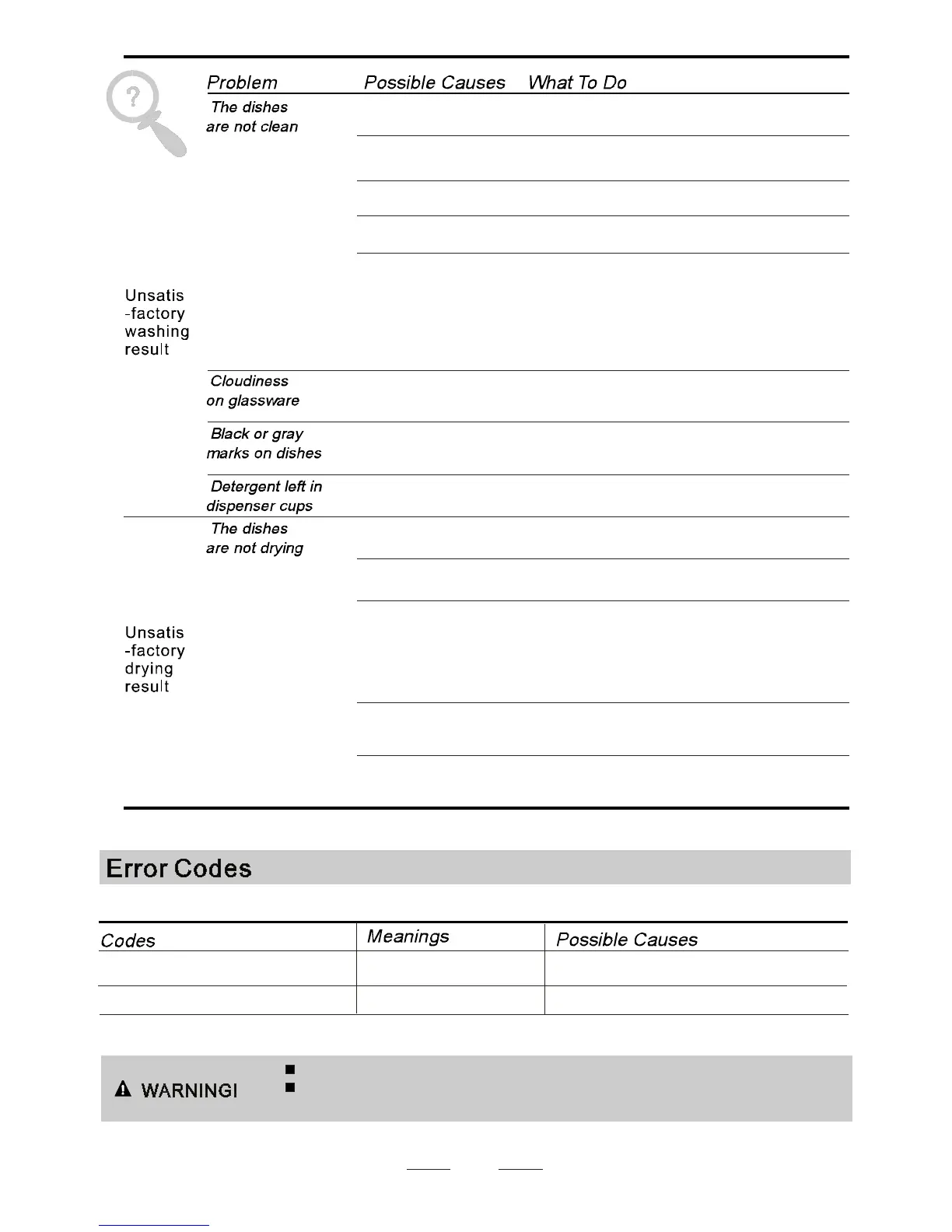 When some malfunctions come on, the appliance will display error codes to warn you: