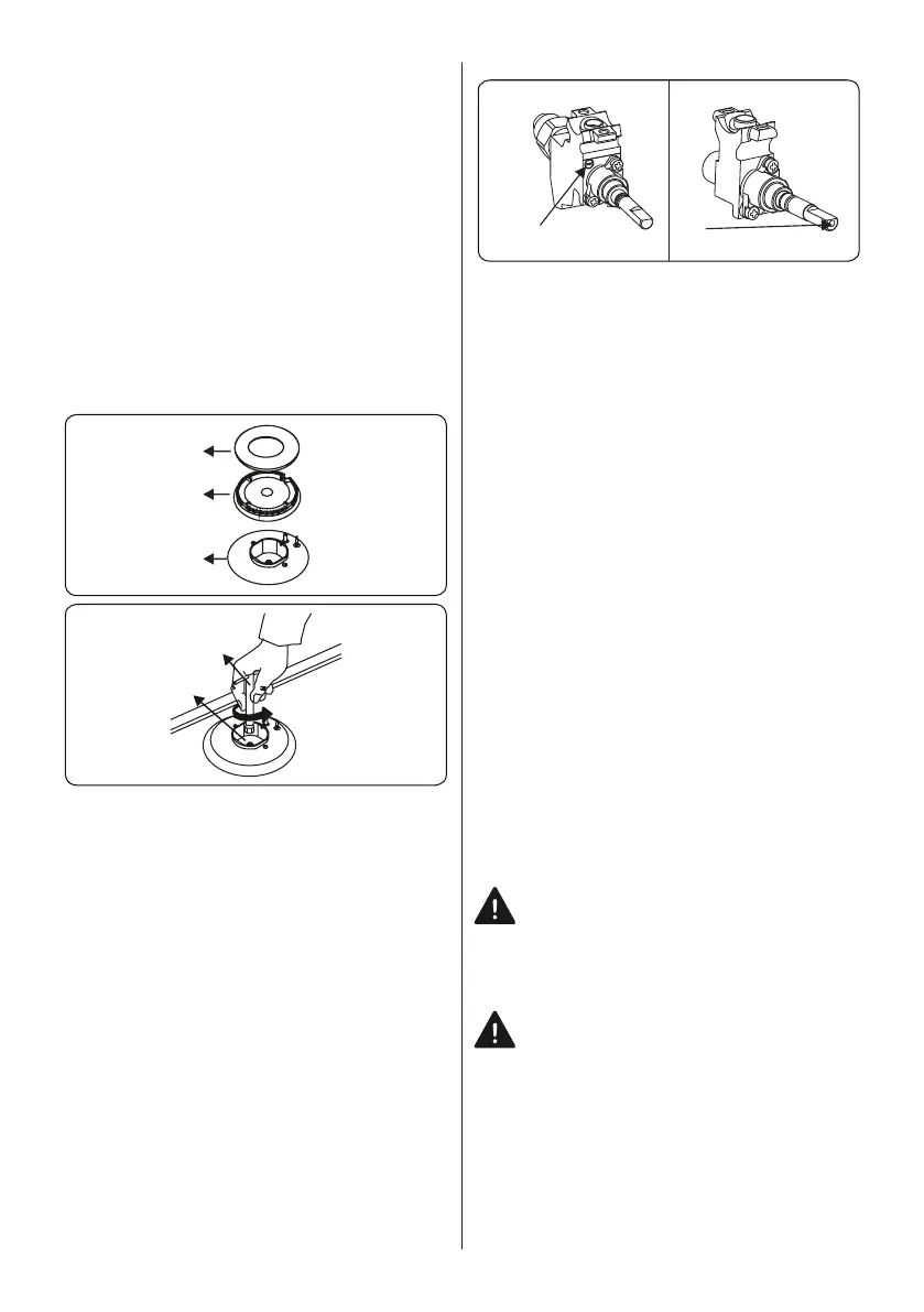 • Remove the burner caps and the
