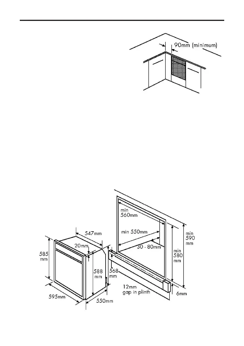 there must be a gap of at least 90 mm