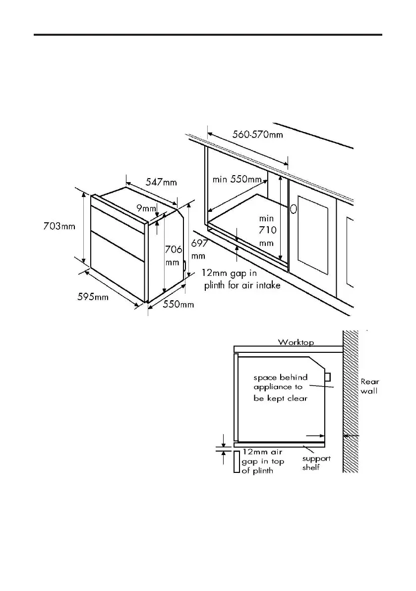 1. When installed in a typical 600mm