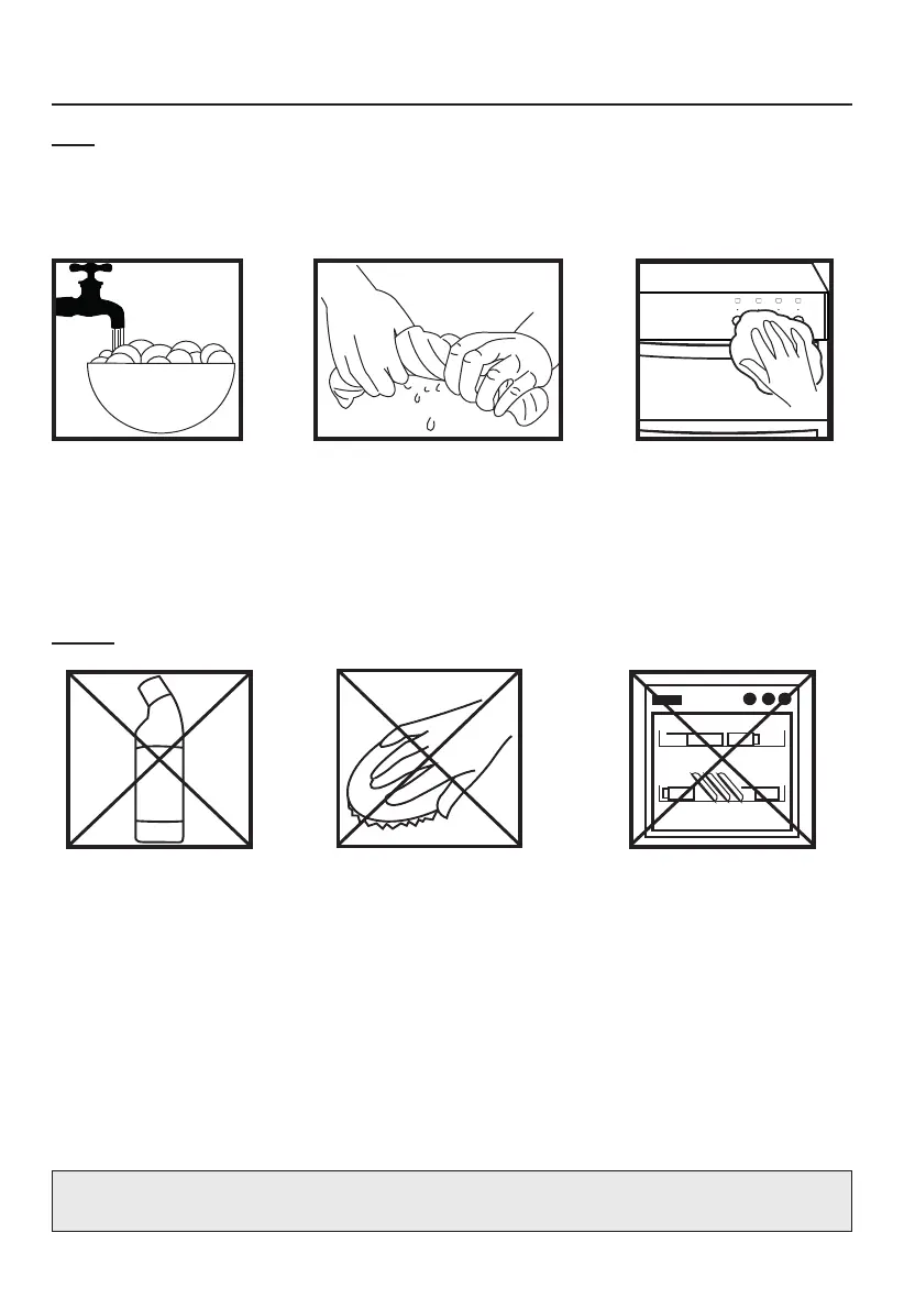 Note: Please take extra care when cleaning over the symbols on the control panel, as this can lead to