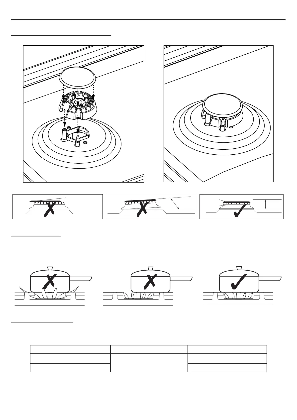 Belling BRD900DF - Fitting burner caps and heads; Pan placement