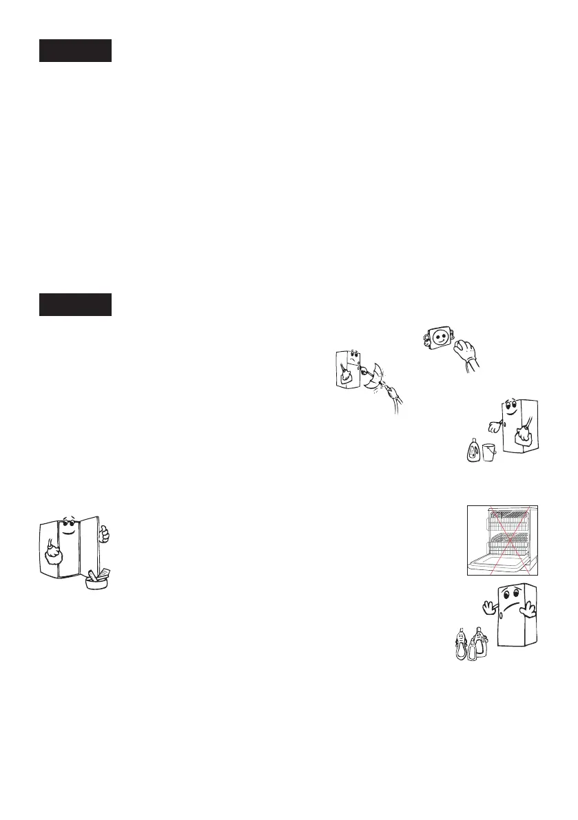 • To reduce humidity and avoid formation of frost, never place liquids in unsealed