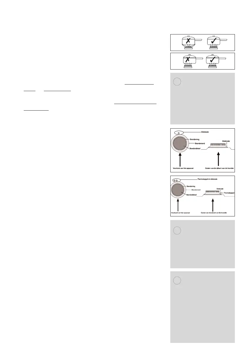 Zorg er altijd voor dat uw pannen juist op de branders