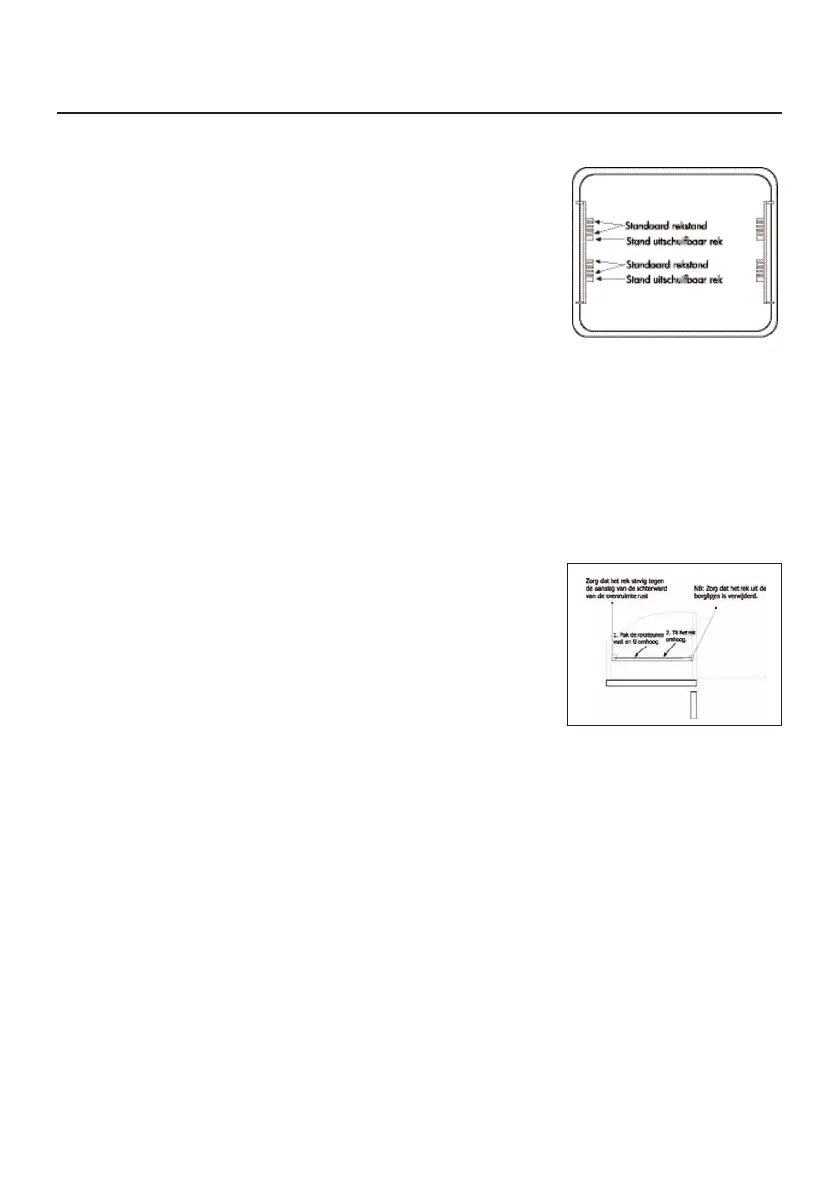 Zorg dat de achterkant van het rek in de borglipjes zit