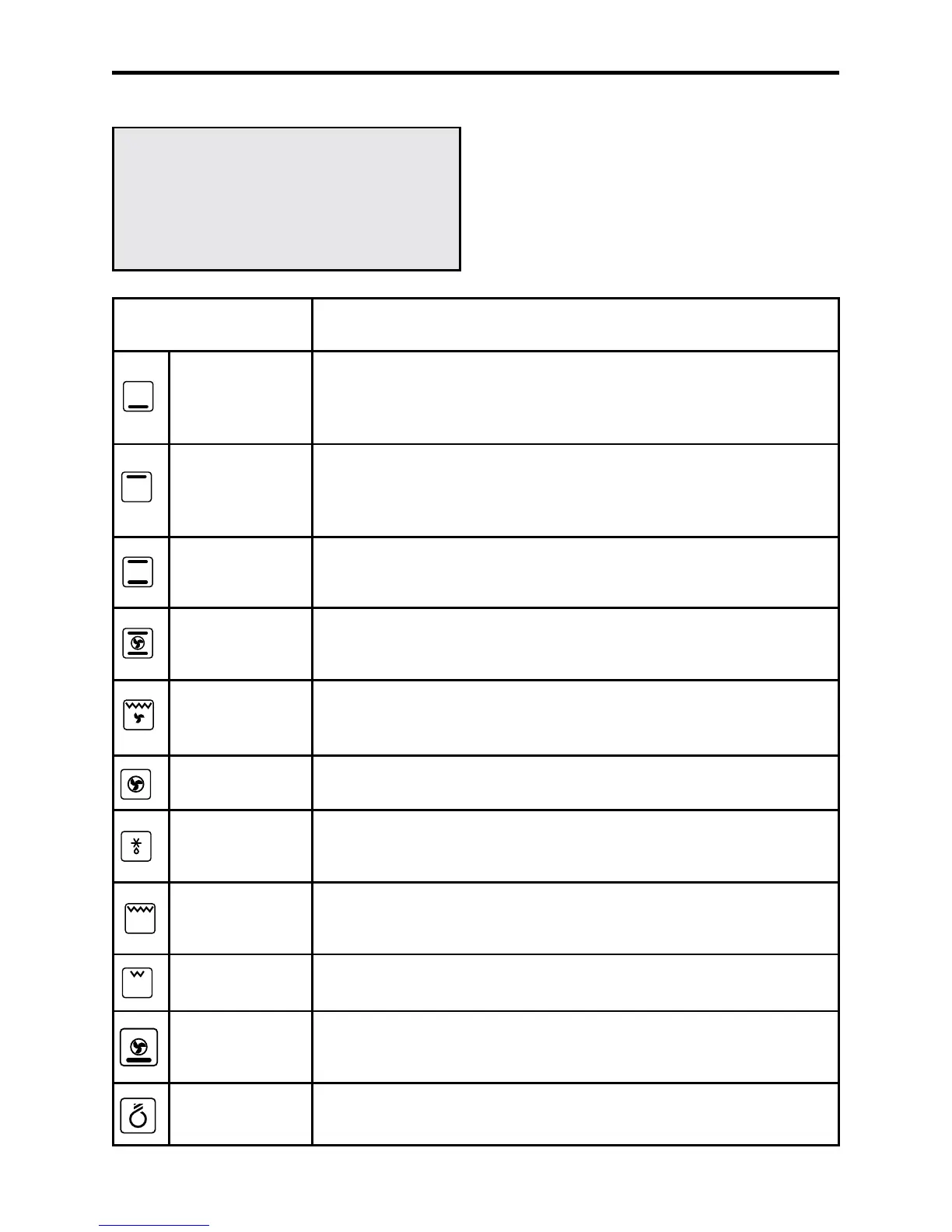 The chart below details all of the functions which are available. Your oven may