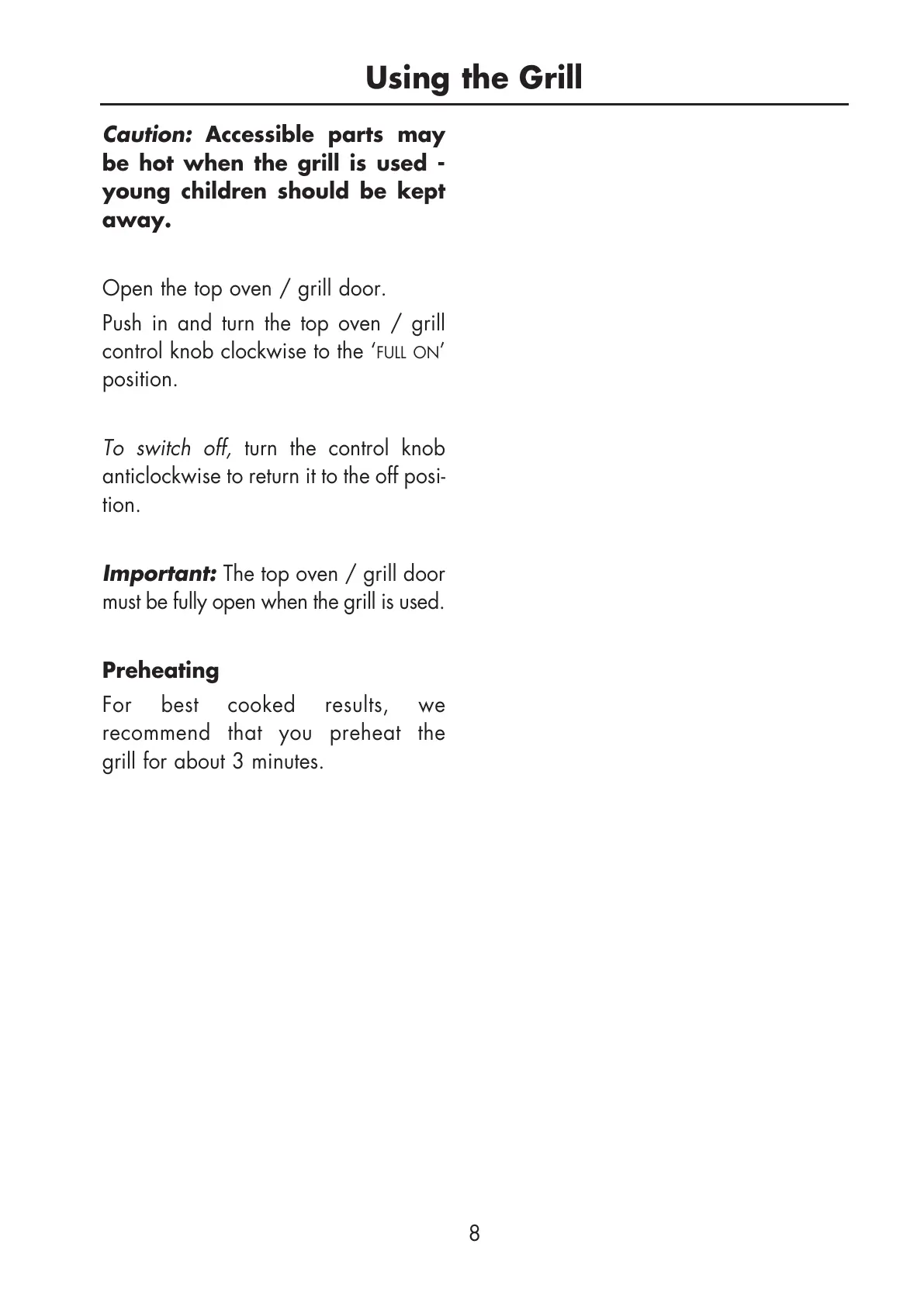Important: The top oven / grill door