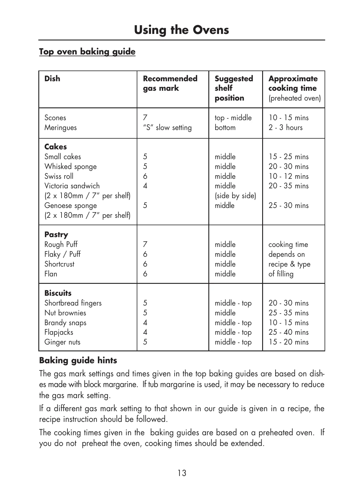 If a different gas mark setting to that shown in our guide is given in a recipe, the