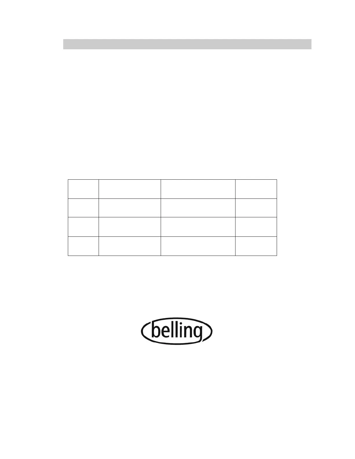 Please consult your retailer in the first instance. If you experience difficulty contact Belling Appliances,