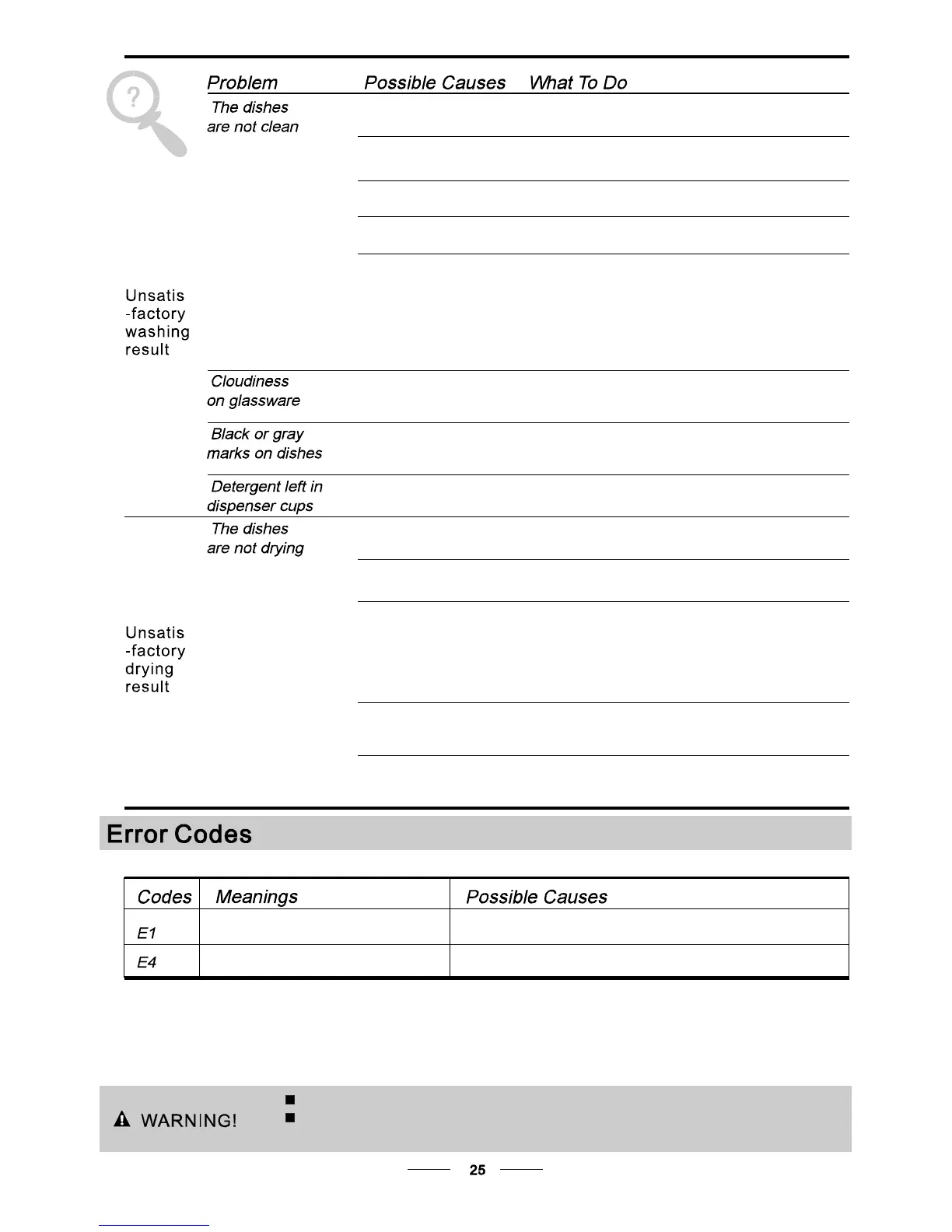 When some malfunctions come on, the app li an c e will display error codes to warn you: