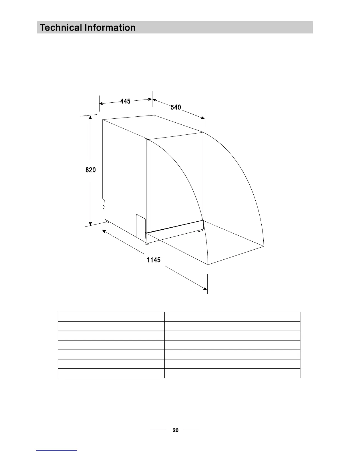 Depth : 540mm