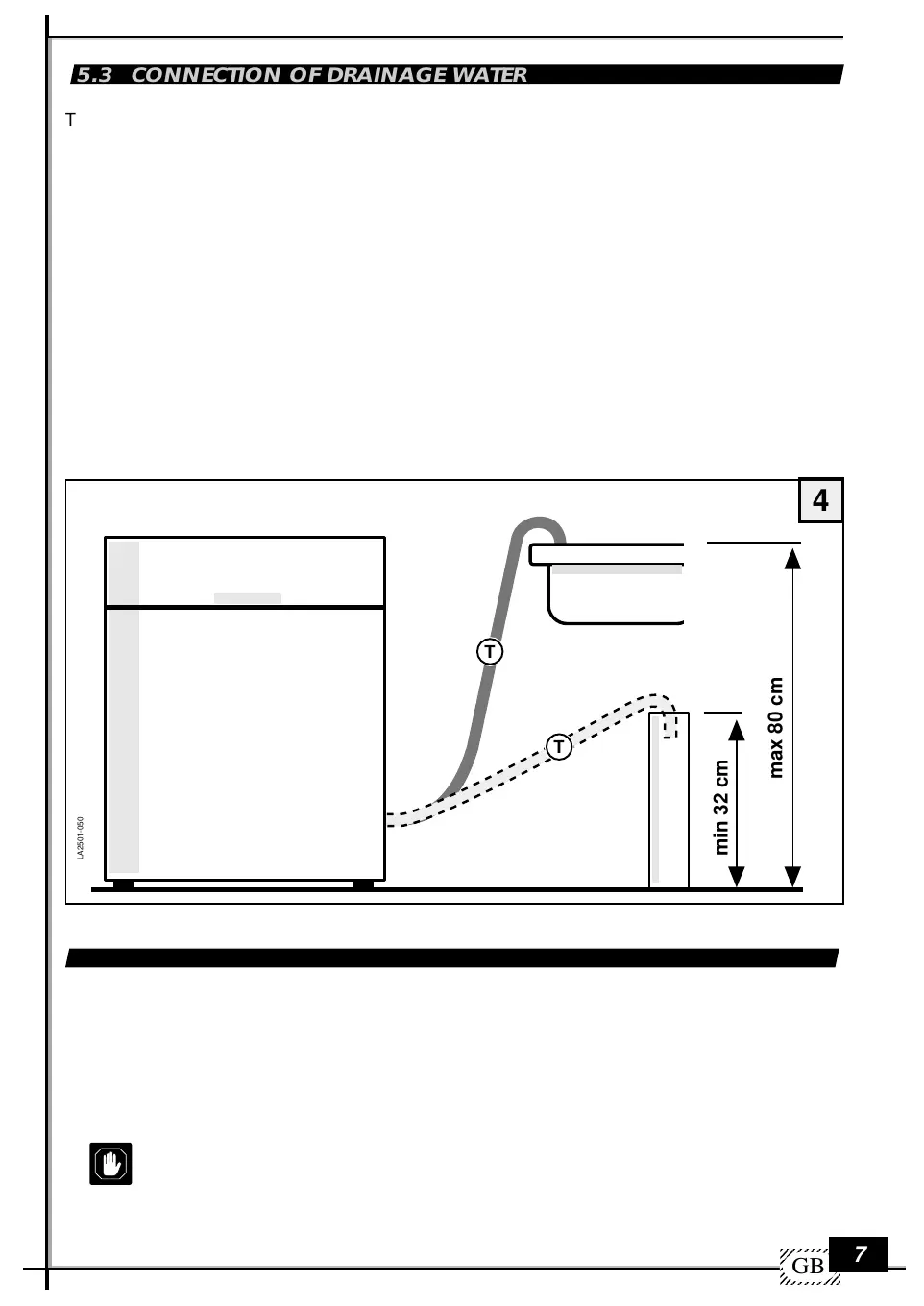 - the tube’s end, relative to the top surface of the dishwasher (fig. 4), must be placed at a height