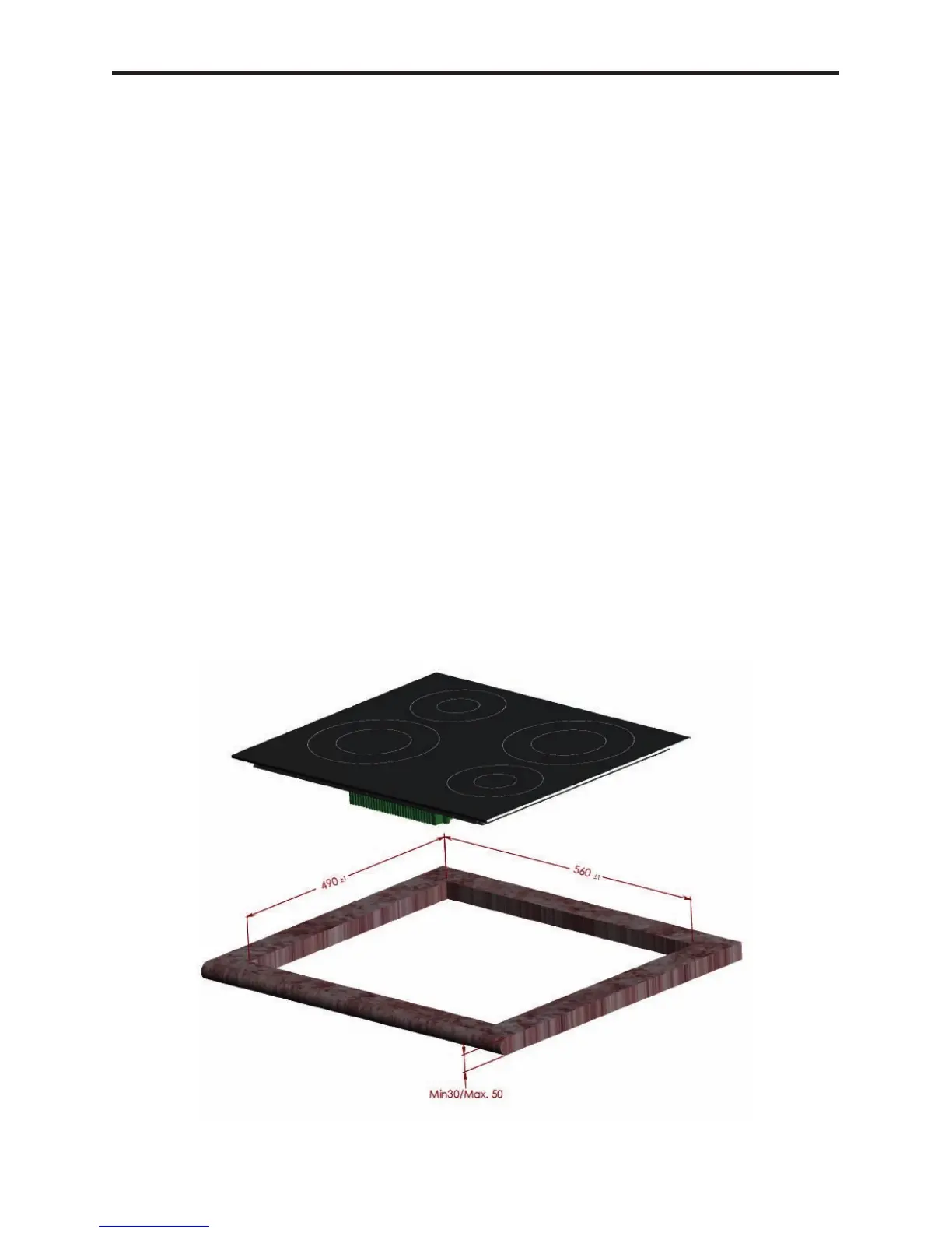 50mm between the rear edge of the hob