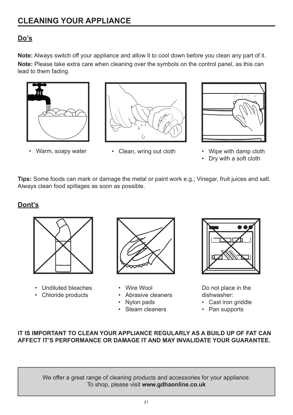 IT IS IMPORTANT TO CLEAN YOUR APPLIANCE REGULARLY AS A BUILD UP OF FAT CAN