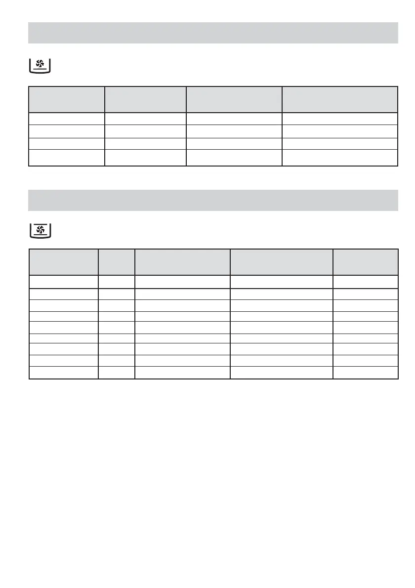 COOKING GUIDE BOTTOM HEAT AND FAN
