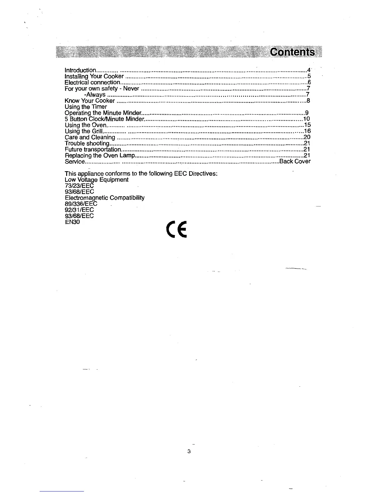 This appliance conforms to the following EEC Directives: