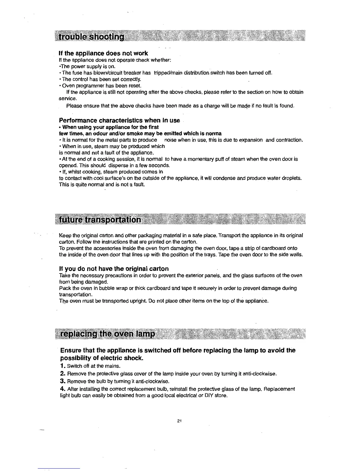 oven must be transported upright. Do not place other items on the top of the appliance.