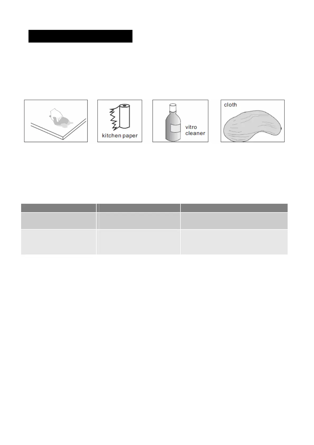 z Vitro-ceramic should however be cleaned of any spills or splashes as quickly as possible.