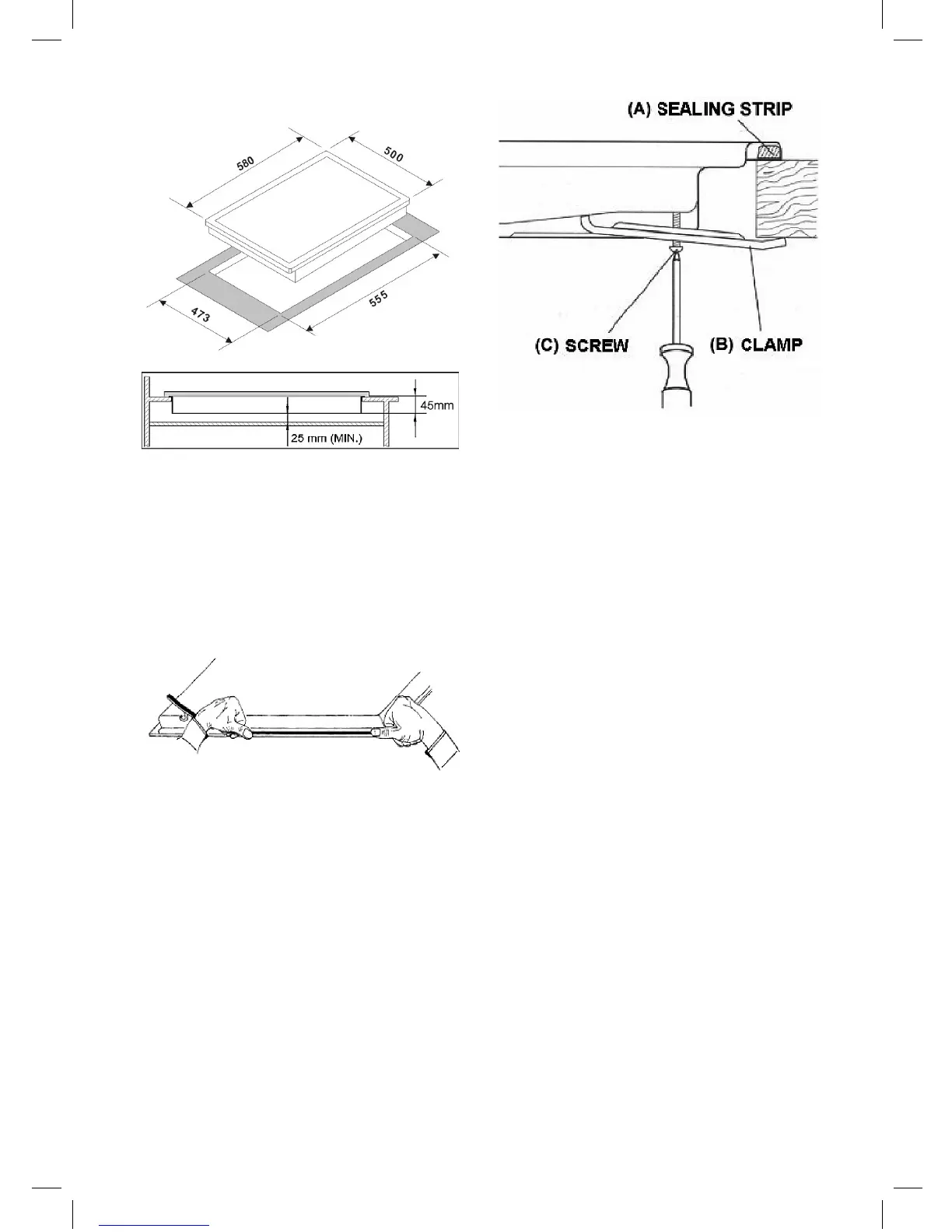 worktop. Then fully tighten the screws (C) to