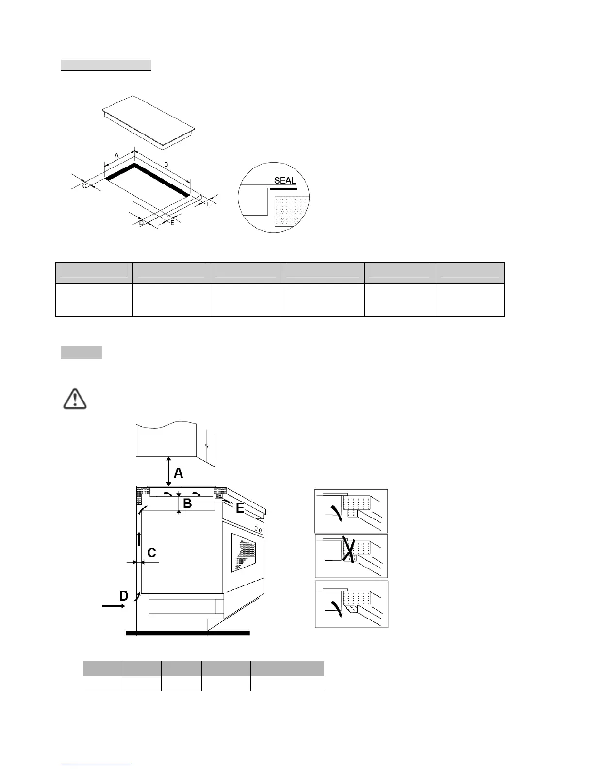 Note: The safety distance between the hotplate and the cupboard above the hotplate should be at least