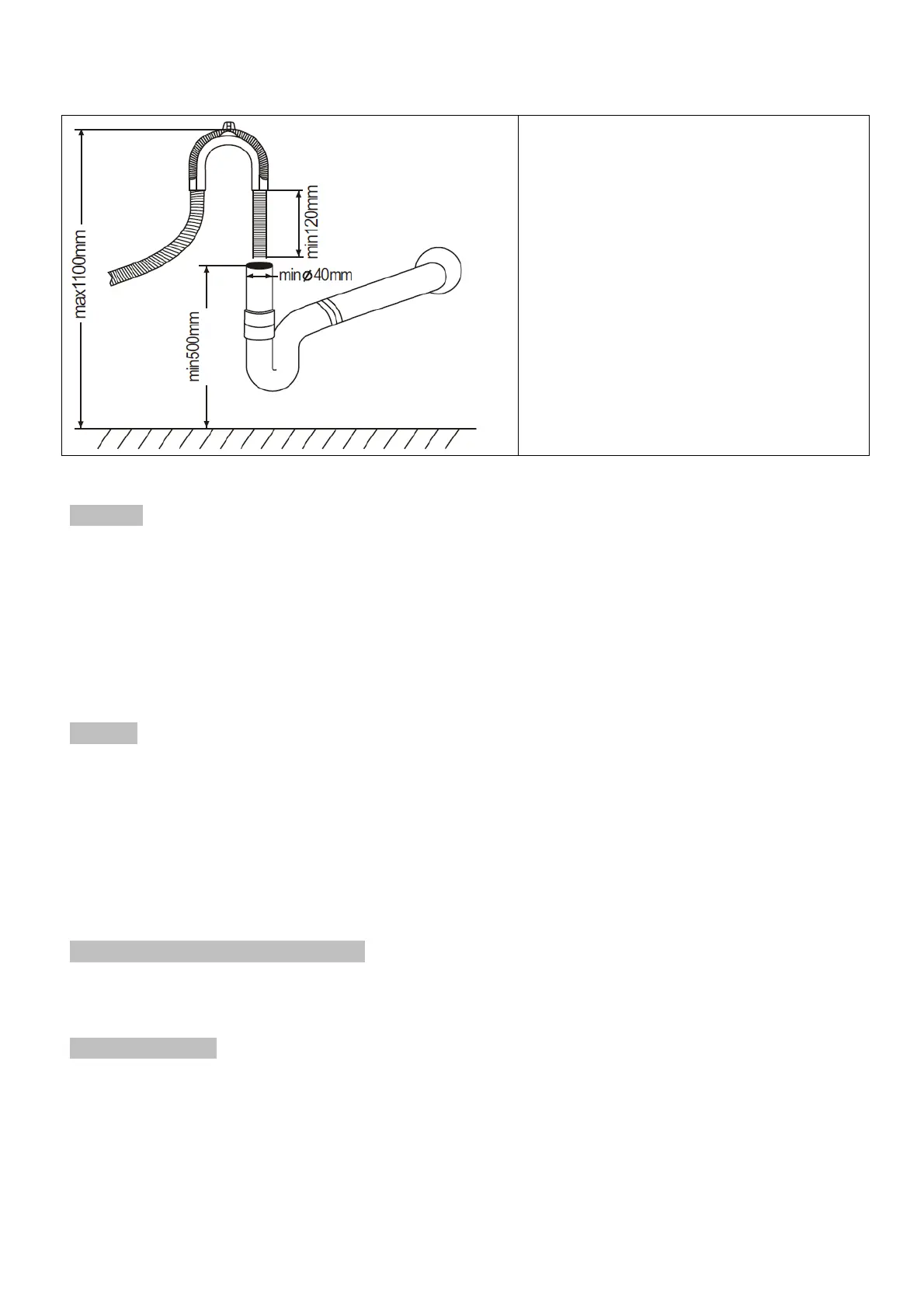 If the sink is 1000mm higher from the floor, the excess water in hoses cannot be drained directly into the sink. It