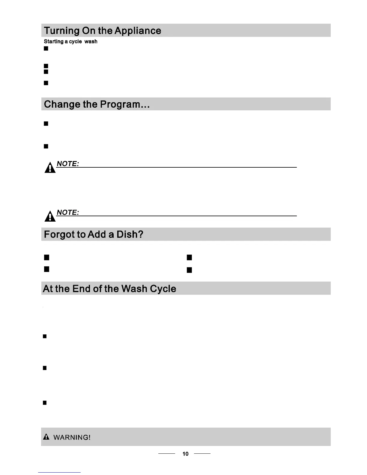 You can m odify the washing progr am, Whe n the dis hwasher just runs for a short time.