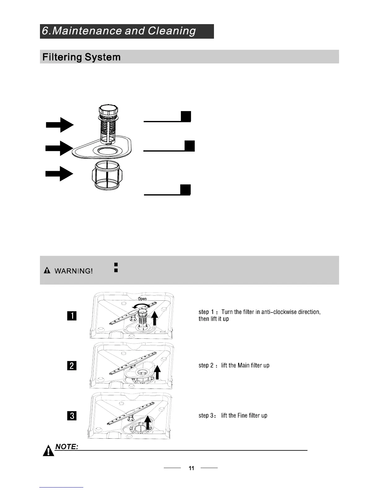 When following this procedure from step1 to step 3, the filter system will be removed;