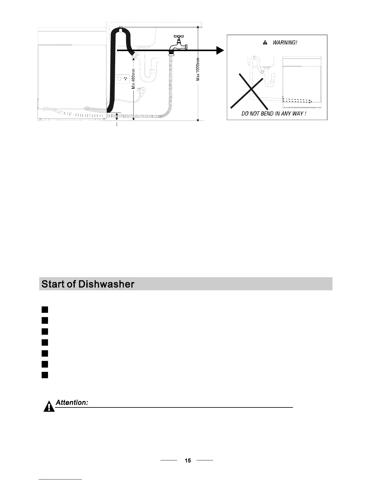 Ensur e that the w ater dra in h ose is no t kin ked or s quashed .