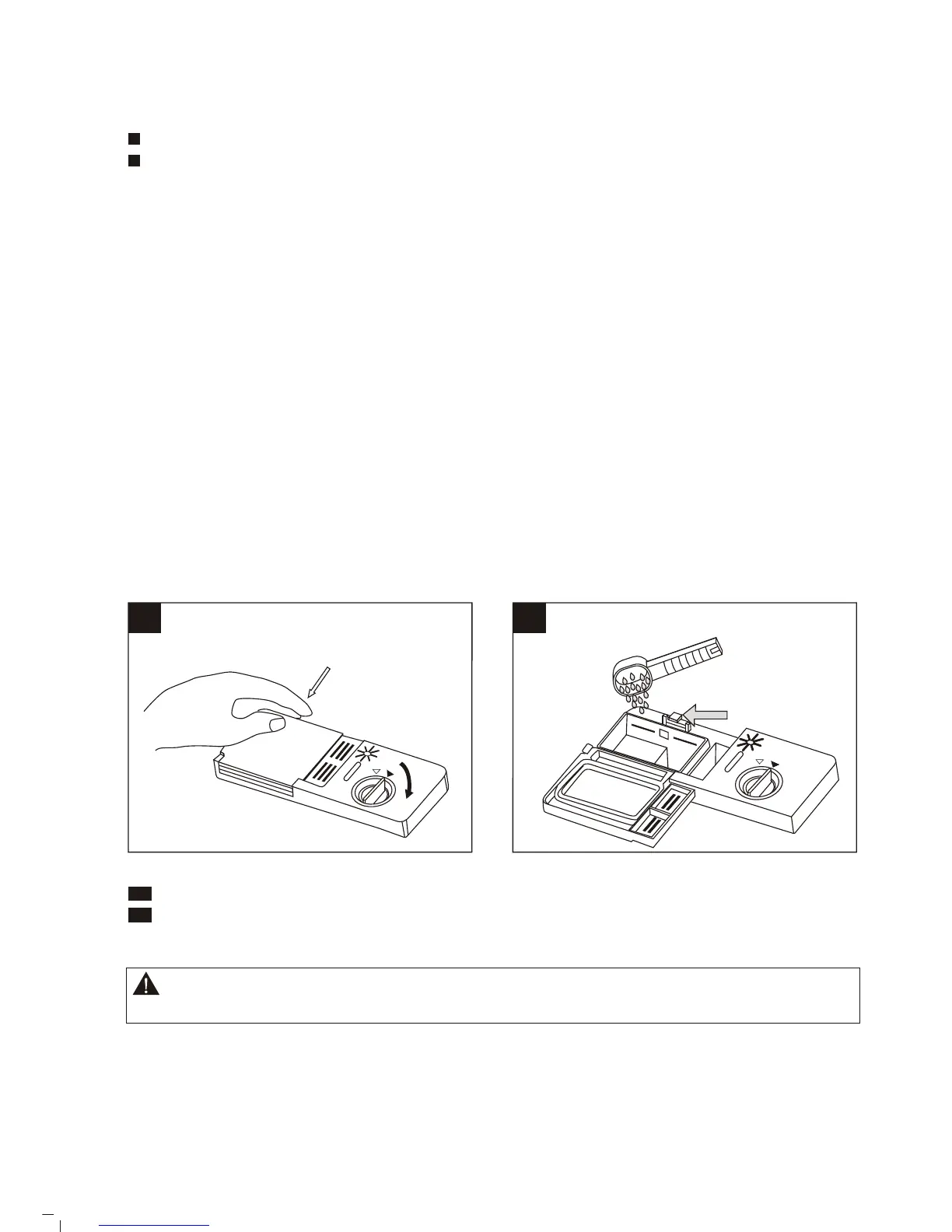Dishwasher detergent is corrosive! Take care to keep it out of reach of children
