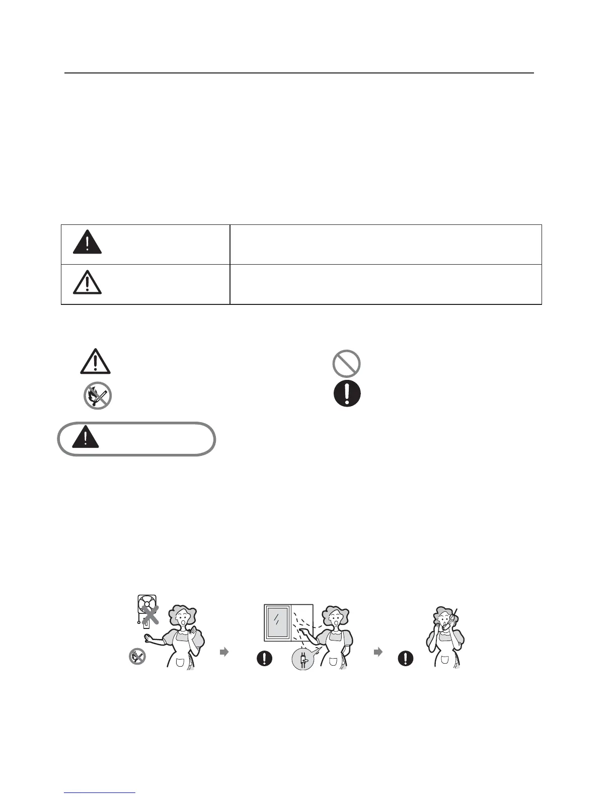 - Do not switch on/off any electrical appliance and do not touch any electric plug.