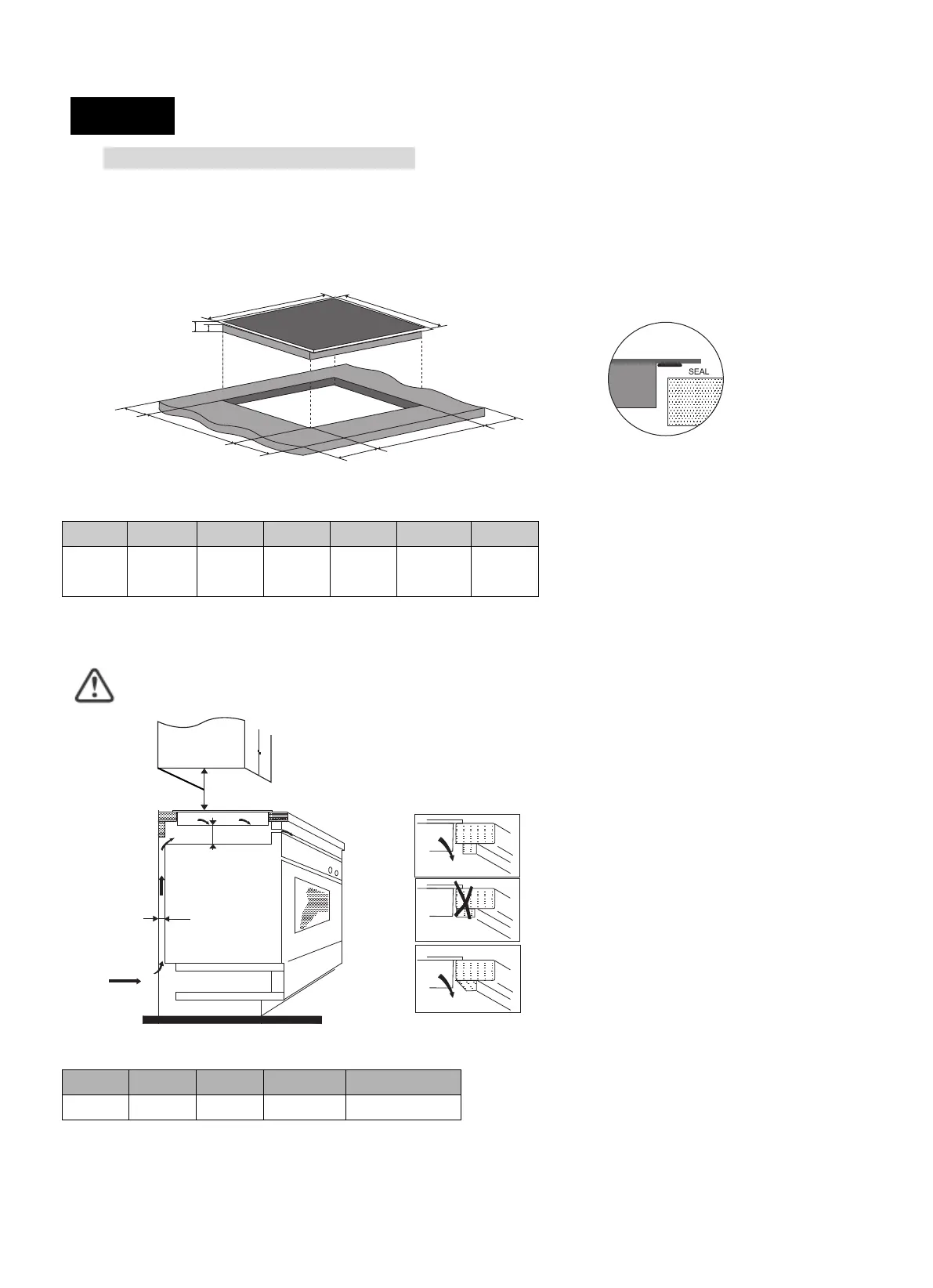 Be sure the thickness of the work surface is at least 30mm. Please select heat-resistant work surface