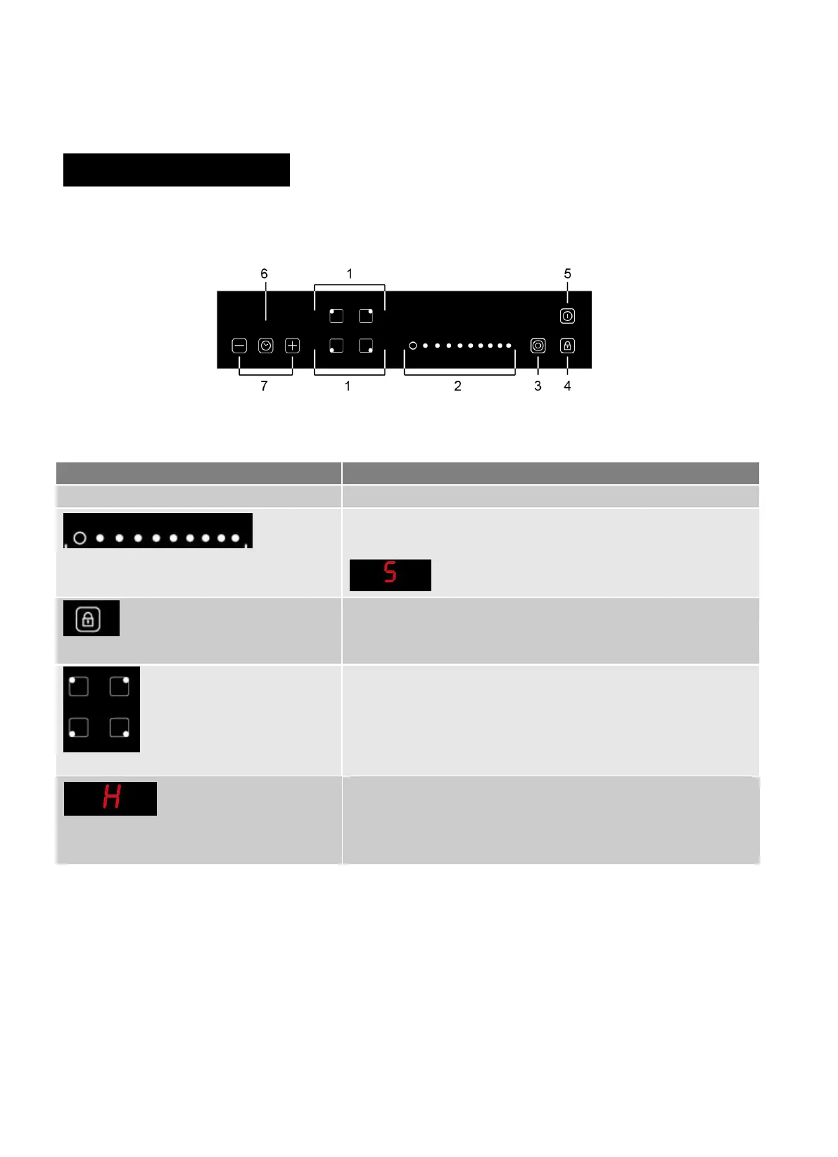 Power setting of the zones, from 1 to 9, for example, this display