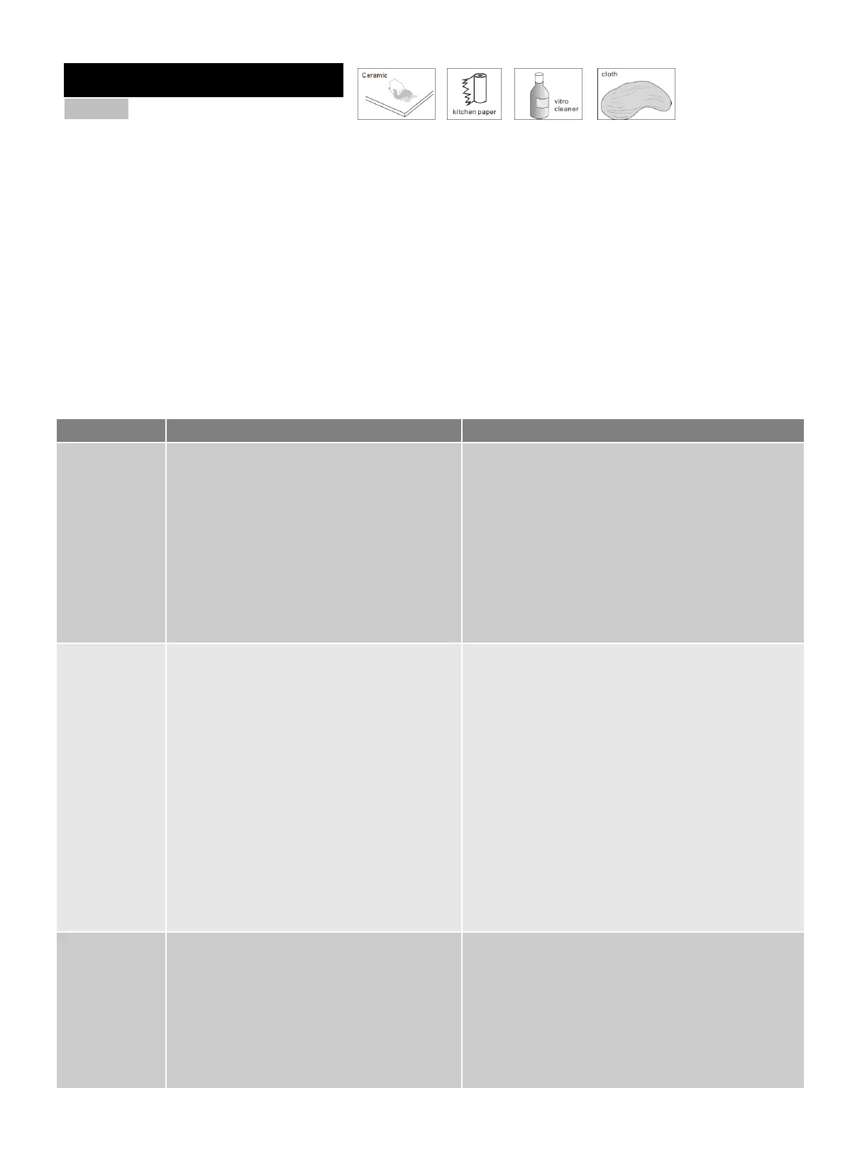 Both Vitro-ceramic and zone rings should however be cleaned of any spills or splashes as quickly as