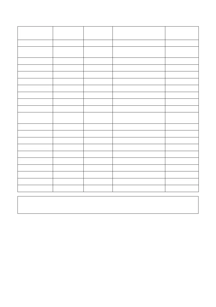 NOTE: This table is a recommended guideline only and may vary depending on personal