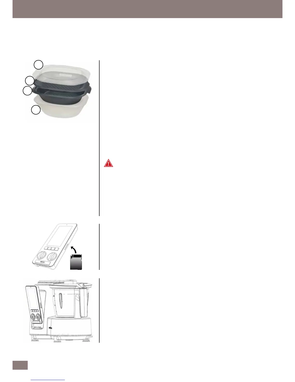 1. When handling the Vapore steam tray, remember that there is hot water vapour coming out