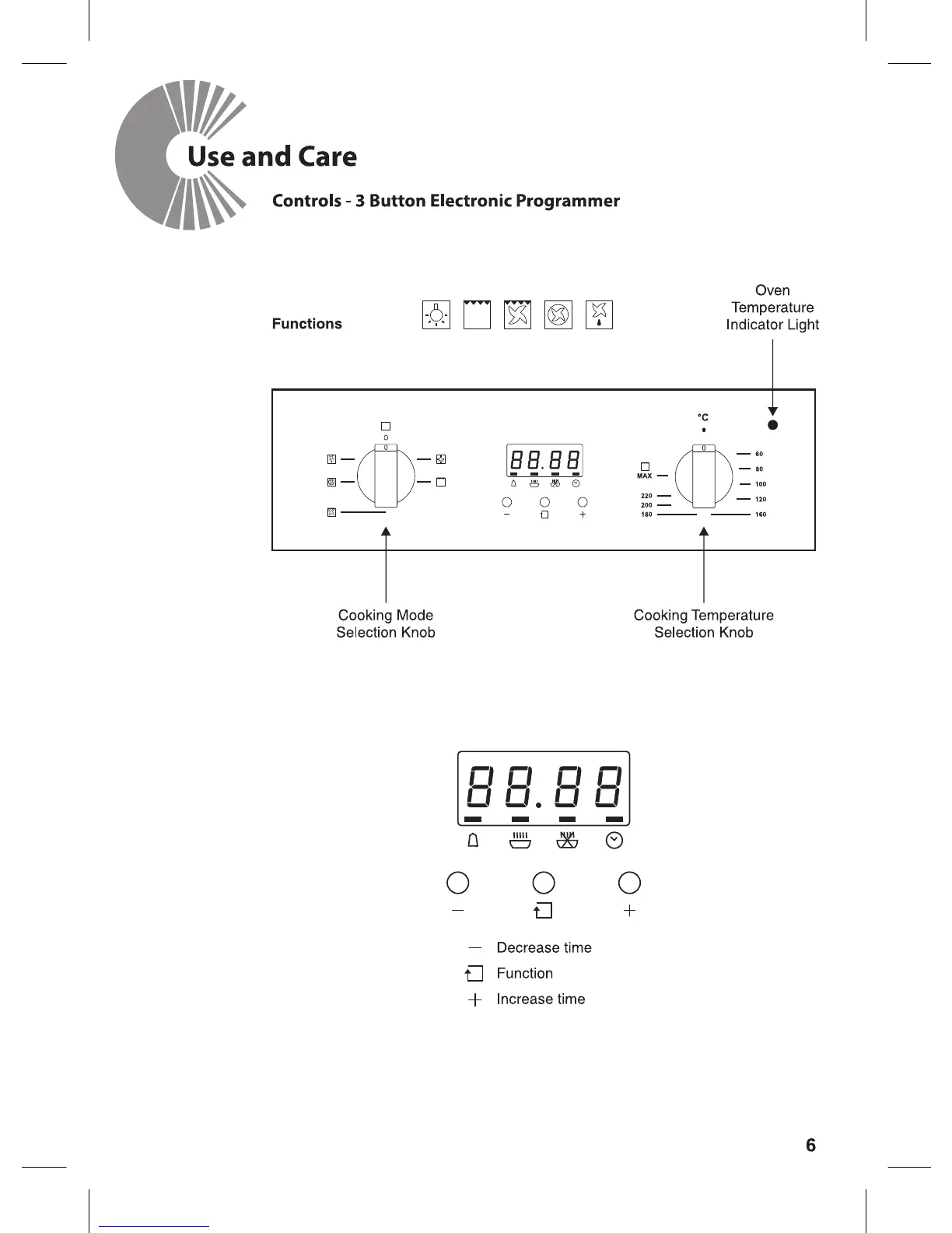 BELLISSIMO TB60FDTSS-3 - Use and Care; Controls Overview